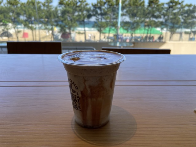 삼척해수욕장에서 제일 좋아하는 카페 하나가 있다. 맛있는 아몬드크림라떼를 찾아 사람들이 줄을 설 정도로 유명한 카페다.